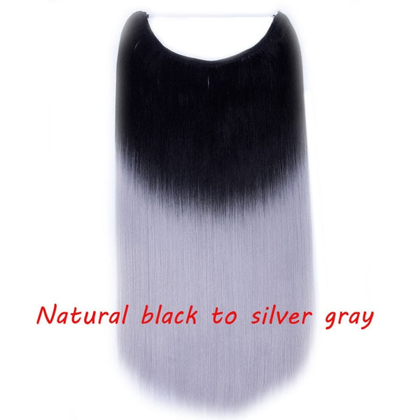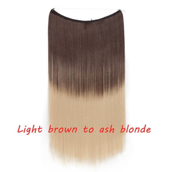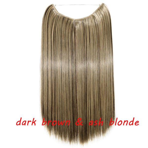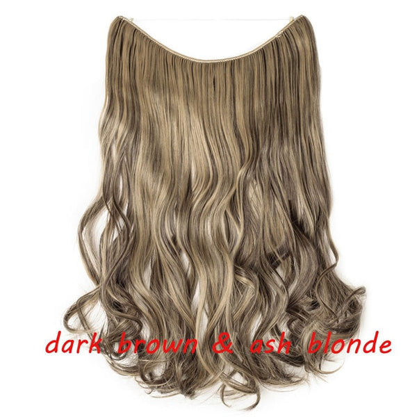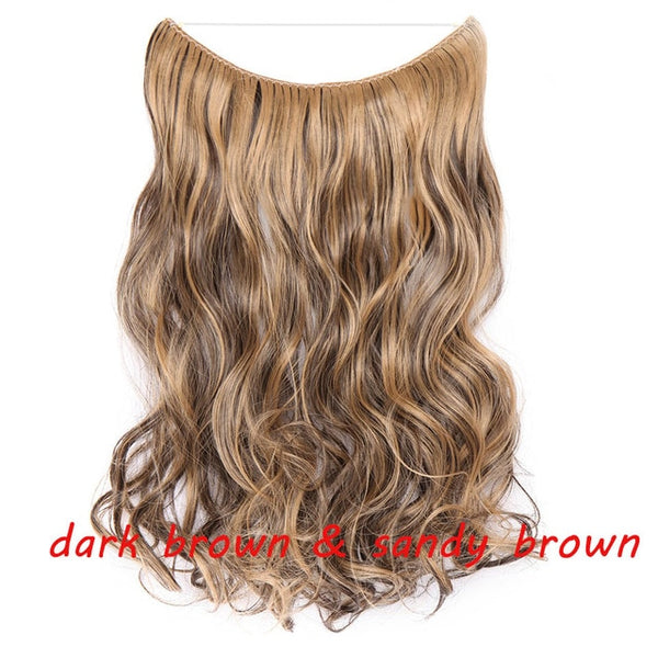 S-noilite 20 inch Invisible Wire No Clip One Piece Halo Hair Extensions Secret Fish Line Hairpieces Wave Straight Synthetic